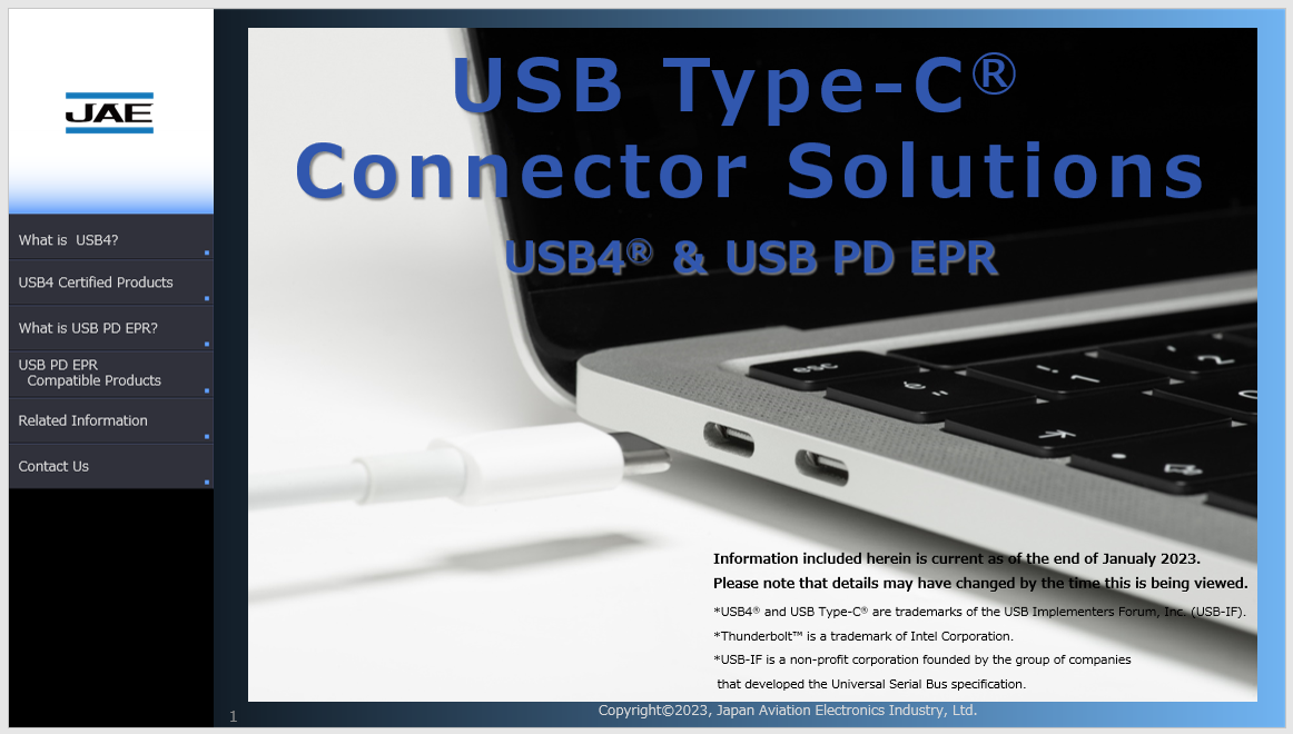As a global leader in interconnect technology, JAE was an active contributor in the USB-IF working group tasked with creating the new specifications. JAE also offers a large line up of USB Type-C connectors and cables that support various requirements such as USB Power Delivery, USB 2.0 only, and Thunderbolt™ 3.